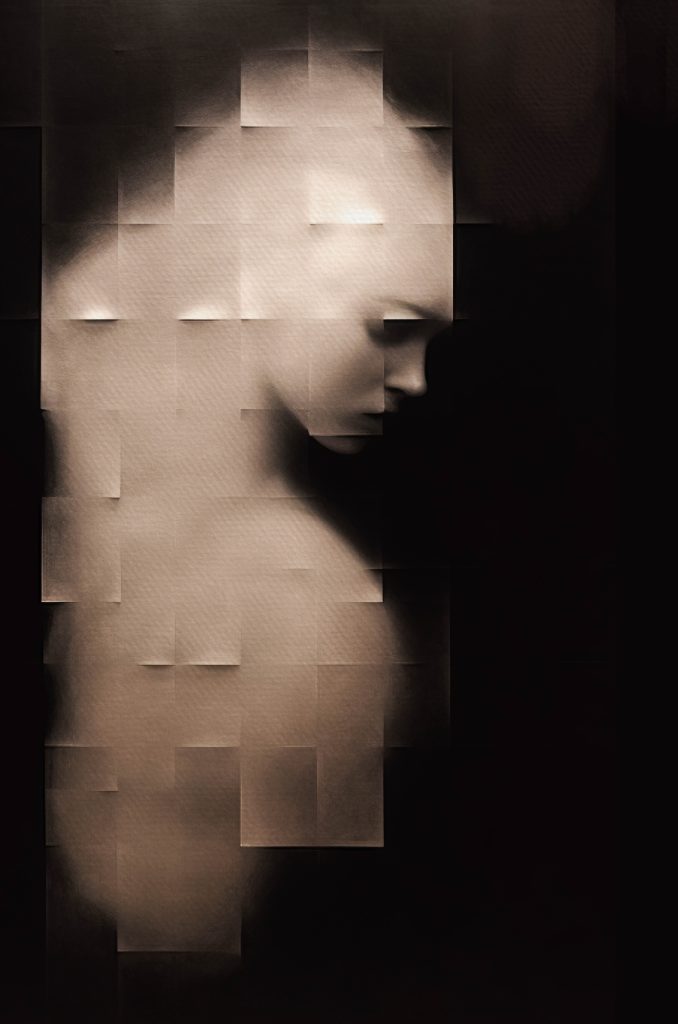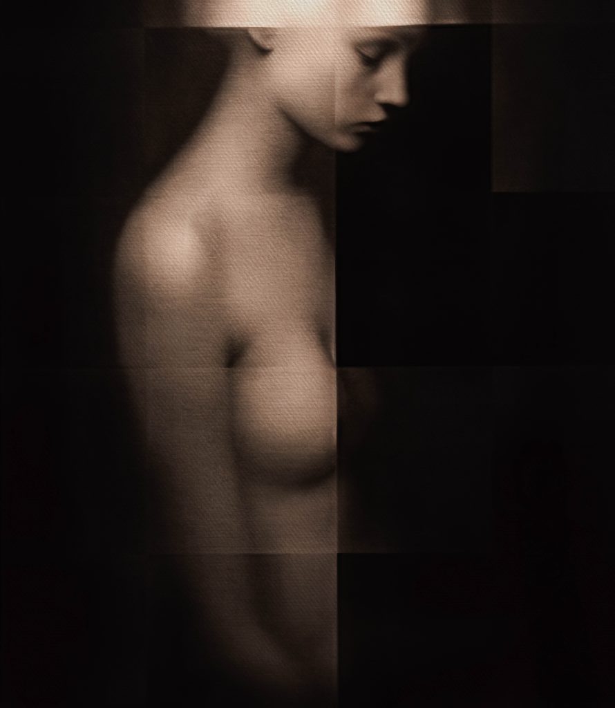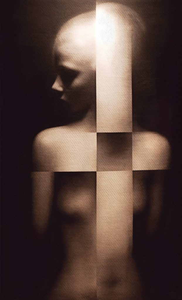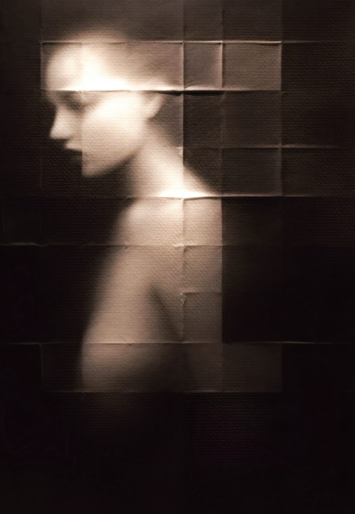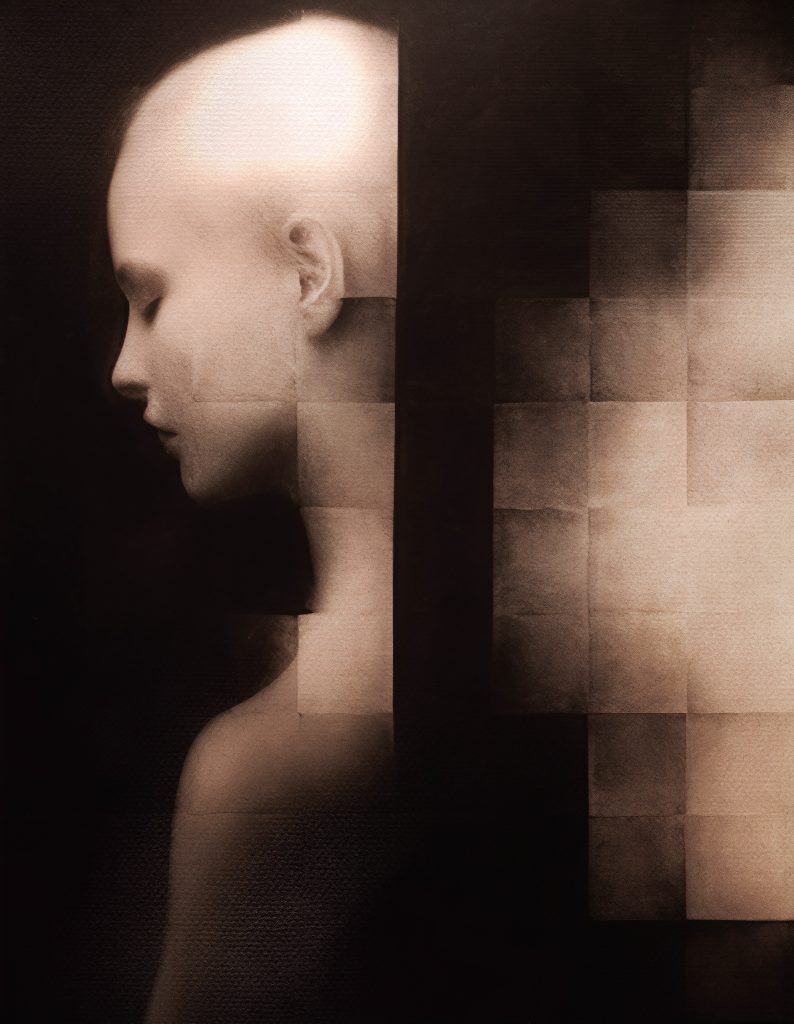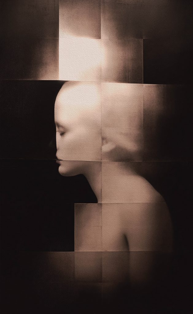 La representación abstracta de figuras humanas, parcialmente ocultas en el fondo negro, profundiza aún más la narrativa visual de la colección. No solo simboliza la complejidad de la psique, sino que también actúa como una invitación a los espectadores para explorar lo que está fuera de su vista inicial.